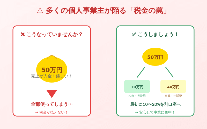 「今月は売上50万円!」と喜んで、そのお金を全部使ってしまっていませんか?