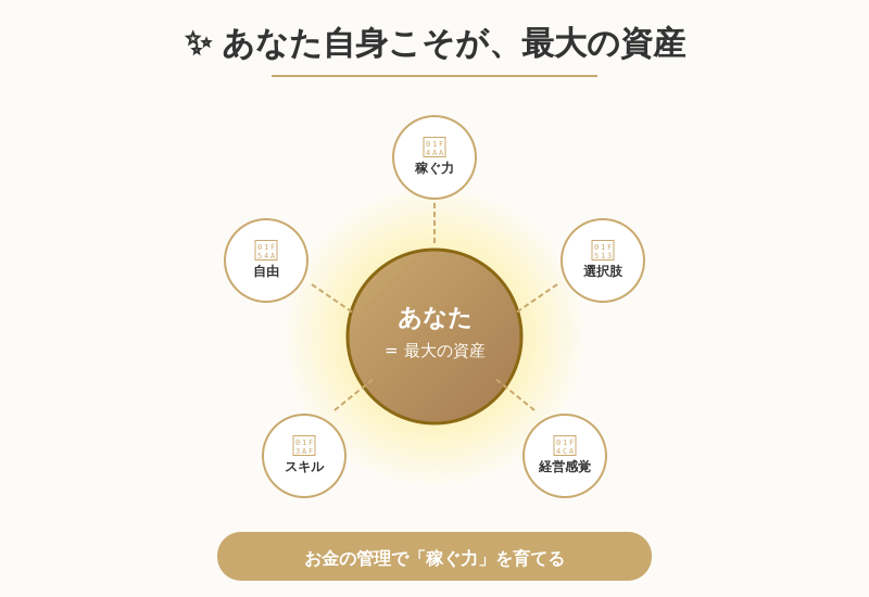 同じように、最大の資産である「あなた自身」も、お金の管理を通じて状態を把握し、成長させることができるのです。